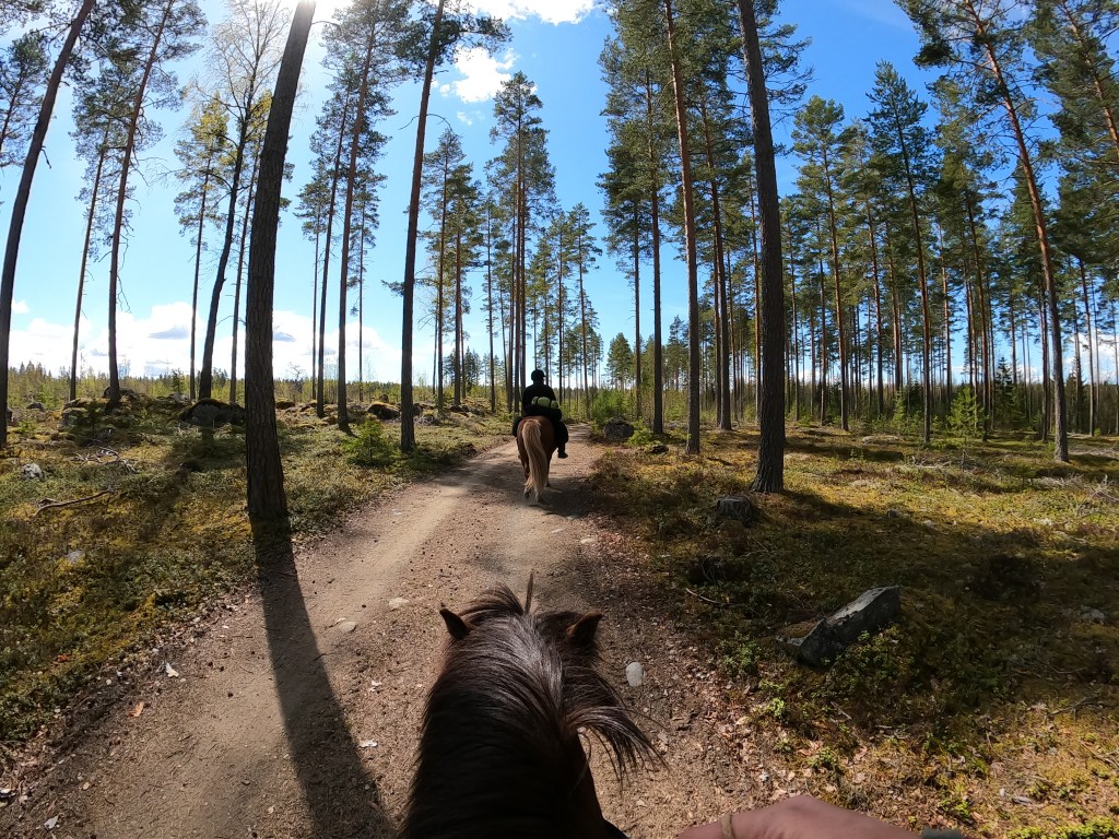 Kuljemme hiljaisilla metsäteillä ja parissa kohtaa poikkeamme metsään oikaistaksemme seuraavalle tienpätkälle. Välttelemme isompia teitä, joilla autoja voisi tulla vastaan; mukavampaa ja rennompaa menoa.