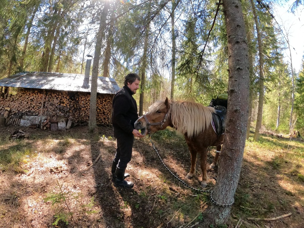 Kylmän takia nousemme jo neljältä aamuyöstä tekemään laavulle aamunuotiota. Vähäisten yöunien filosofisen syvälliset aivot tuovat esille kysymyksiä kuten: Miksi hevosilla on turpa? Mitä jos hevonen olisikin lihansyöjä? Ja: Miksi hevosen pää on sen muotoinen kuin se on? Näihin kysymyksiin emme valitettavasti löytäneet vastauksia…