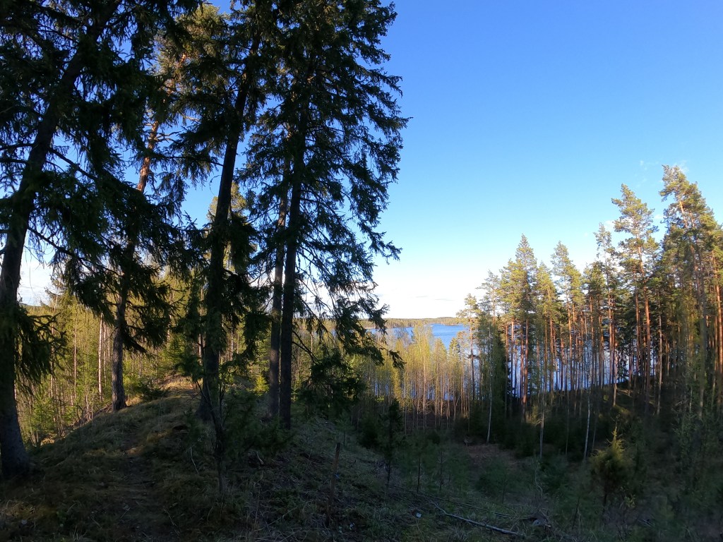 Terrikorvesta jatkamme vähänkäytettyjä tienpohjia kohti Nuoramoista. Reitti muistuu mieleeni hyvin, eikä karttaa tarvitse paljoa tarkistella. Metsässä näemme merkkejä karhuista ja otinkin mukaani ns. karhukellon, jota kilistelen matkalla, sillä en halua törmätä karhuihin saati hirviin tällä reissulla. Ukkometsoja nähtiin kyllä, mutta onneksi eivät olleet kosiotuulella.