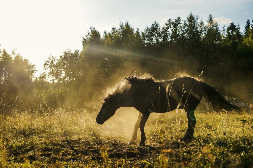 Ystävä kävi kylässä ja lähdettiin maastoon seikkailulle. Kysyin, että haluatko tehdä lyhyen vai pitkän maaston, ja lopulta maasto venyi neljään tuntiin. Ystävä ei muuten ratsastele, mutta hienosti pärjäsi, vaikka maastot eivät olleet aina mitään helpoimpia! Sanoinkin jossain metsäpuskaosuudella, että tällaista kokemusta et sitten saakaan missään muualla… 😀 Hirvikärpäsiä oli jonkin verran, mutta ne kiusasivat lähinnä Slepeä ja jättivät meidät muut rauhaan. Maastot täällä uudessa paikassa ovat kyllä tosi monipuoliset, enkä ole kuitenkaan vielä päässyt kuin riipaisemaan pintaa uusien reittien etsimisessä. Hepat vaikuttavat olevan myös tosi innoissaan aina vaihtuvista poluista ja Slepe erityisesti on ollut tosi reipas (no, ne hirvikärpäset saattaa avittaa myös asiaa).