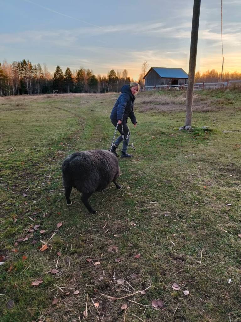 Muita kuulumisia: Meillä on nyt kolme lammasta. Päkä, Ella ja viimeisimpänä tulokkaana Irma, joka sai heti lihavan kuntonsa takia lempinimekseen Irmapallo. Irma oli karannut teuraskuormasta ja etsi kotia. Laumassa vaikuttaa olevan tosi nössykkä. Vaikka koon puolesta voisi toiset helposti jyrätä, en ole kertaakaan nähnyt, että puskisi kumpaakaan. Ja onneksi vanhat leidit otti sen hyvin vastaan. Päkää piti pitää vähän silmällä, kun on kuulemma yleensä melko tossukka, mutta kun ei Irma haastanut ollenkaan, meinasi se ihan innostua, kun pääsi kerrankin vähän uhittelemaan. Otti oikein vauhtia puskuun, mutta pysähtyi useimmiten vähän ennen törmäystä. Tosi nopeasti kuitenkin tilanne rauhoittui. Irma on tosi rauhallinen kaveri, kesympi kuin luulin, mutta aika, miten sen sanoisi ”ilmeetön” möllöttelijä. Kun menee viereen ja silittää, niin häntä kyllä heiluu vimmatusti! Ei kuitenkaan samalla tavalla hakeudu (ainakaan vielä) hellittäväksi, niinkuin Ella ja Päkä. Aika näyttää, millainen persoona siitä lopulta kuoriutuu. Toivottavasti ei kuitenkaan karkailijaa. Se nimittäin juoksi aika nopeasti sähkölangoista läpi kuin mikäkin tankkeri. Lihavuutensa takia sain sen kuitenkin juostua kiinni! Nyt ovat aitassa ja pääsevät ulos seuraavan kerran keväällä. Josko temput olisi unohdettu siihen mennessä.