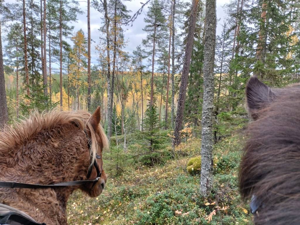 Ratsastuskenttä tuli virallisesti vihittyä käyttöön, kun sain vetää ensimmäisen ratsastustunnin. Slepe palveli hienosti opetusmestarina. Molemmat poitsuthan on kentällä asteen tahmaisempia, ja Slepe kun on tuollainen hitaasti syttyvä valtamerilaiva jo muutenkin, niin vähän jännitti, että mitenhän sujuu. Alkutahmeuden ja sisäänpäin puskemisten (ja peräti kammokulman ”säikkyminen”=protestoinnin) jälkeen alkoi pikkuhiljaa sujua. Tehtiin alkuun pohkeenväistöä, sitten pysähdyksiä ja peruutuksia. Yhdistettiin pohkeenväistö ajatus tarkkoihin kulmien ratsastamisiin ja pysähdysten ja peruutusten jälkeen siirryttiin tehokkaasti raviin. Tätä jumppailtiin ja oli tosi kiva lopussa nähdä, miten Slepe alkoi laskea päätään ja maiskutella huuliaan, sillä oli selvästi mukavaa. Ratsastajalla oli ihanan pehmeät otteet ja tosiaan ratsasti hyvin istunnalla, eikä hetkauttanut, vaikka mentiinkin vain ratsastusvyöllä (ja riimusuitsilla ilman kuolainta).