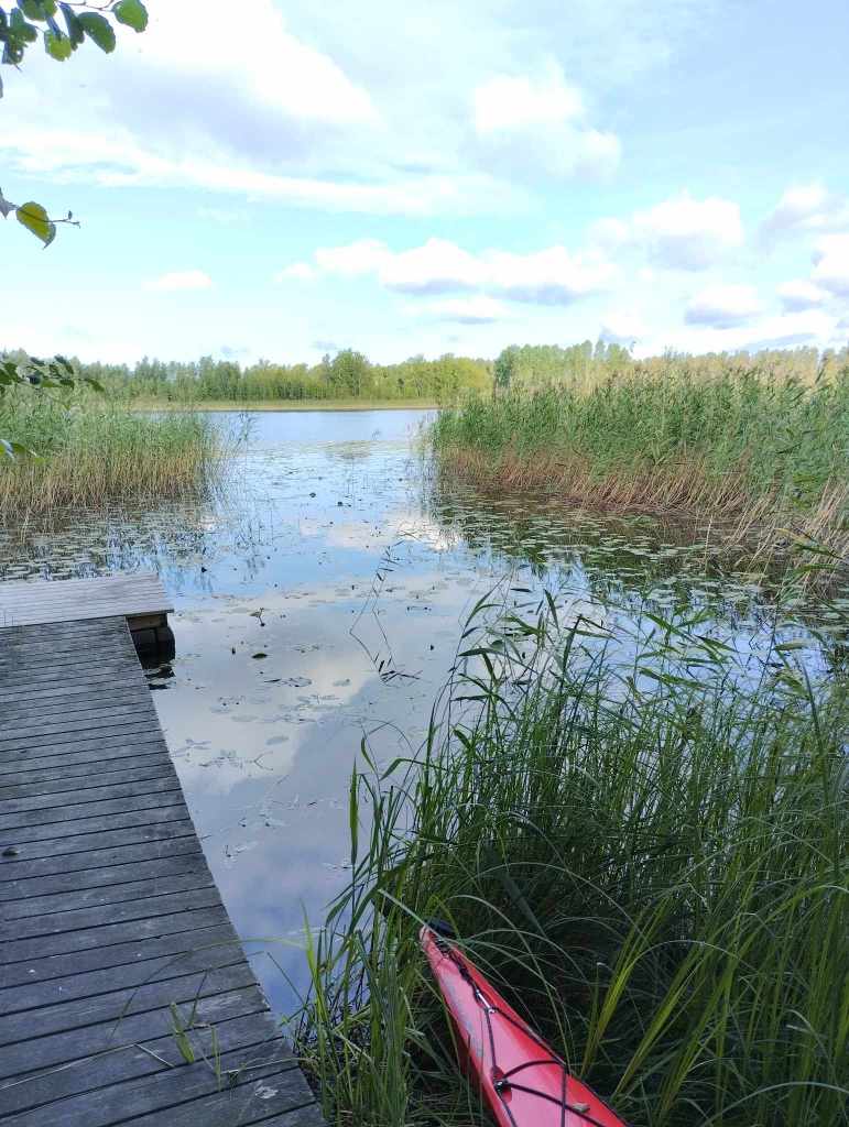 Saavumme Virtaalle ja padon ylityksen jälkeen jokiosuus alkaakin olla ohi ja väylät levenevät. Pysähdymme ihastelemaan upeita lumpeenkukkaryppäitä. Kaislikon seassa on vielä ihanat tyynet hetket ennen viimeistä rutistusta sivuaallokossa. Vasen käsi joutuu tekemään enemmä hommia kajakin suorassapitämiseen, kun evä ei tullut mukaan. Alkaa jo mukavasti tuntua lihaksissa tämä viimeinen etappi.
