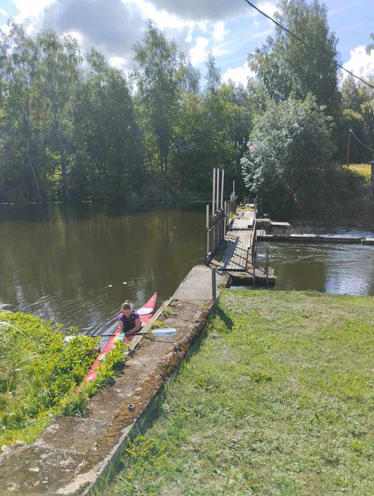 Seuraavaksi ihastelemme Nuoramoistentien siltaa, Vanhansillantien siltaa ja Maatiaiskosken patoa. Nyt saakin meloa ihan padon reunaan kiinni ylityspaikalle. Melontakaveri törmäsi tuttuihin ja päästiin ihan sisävessailemaan tässä välissä. Kaunis on tämäkin pato.