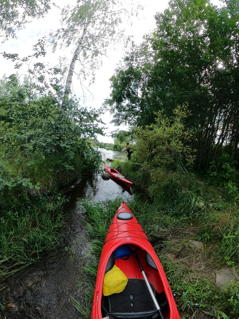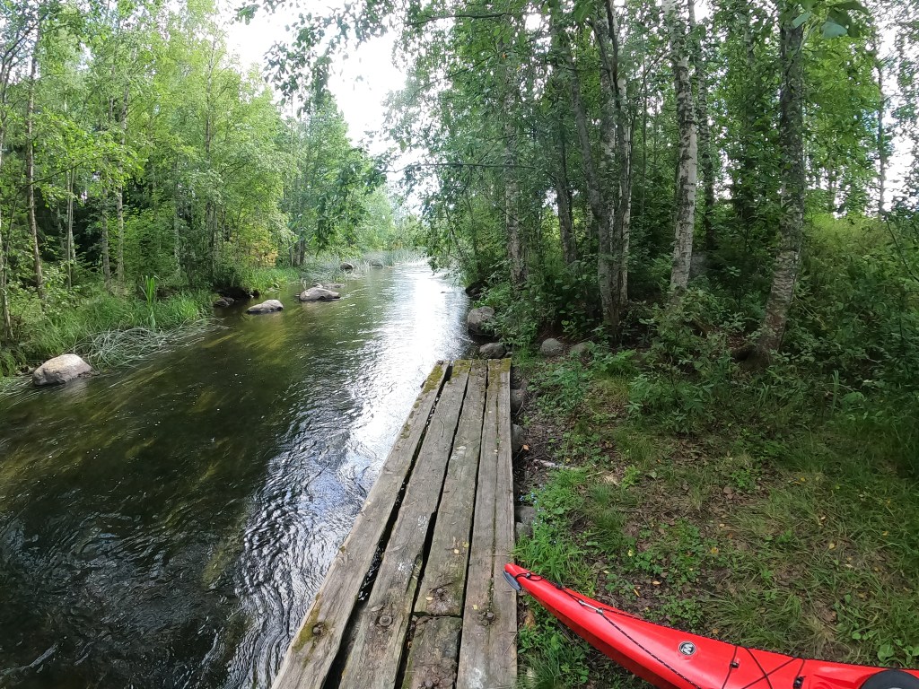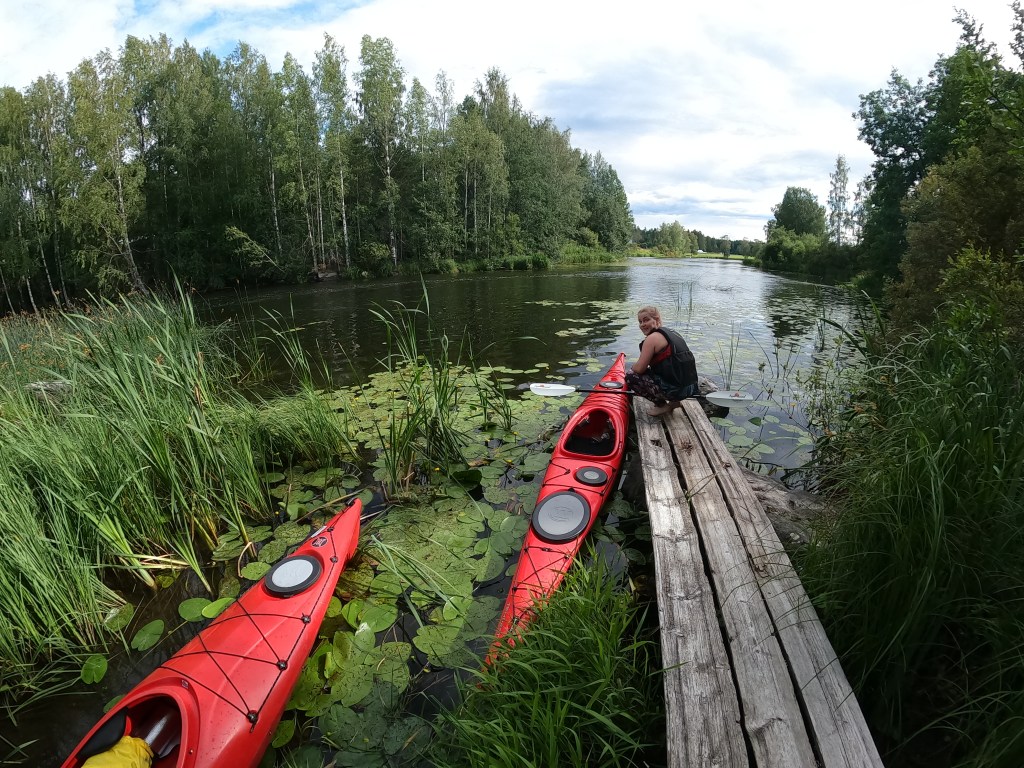 Lähdettiin Koskenniskan veneenlaskupaikalta klo 13.45. Vuokrasin kajakin Kanoottivuokraamosta Hartolan Miikka Kähöseltä. Paljon helpompaa, kun joku muu hoitaa kajakin kuljetukset, varsinkin, kun lähtö- ja päätöspaikka on eri.