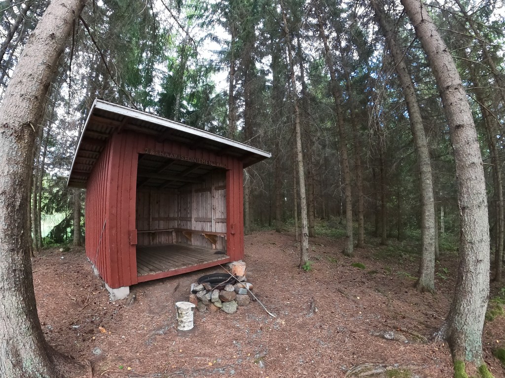 Jatkamme vedenvaltaamaa polkua laavulle, joka sijaitsee harjujen välisessä laaksossa. Laavun lisäksi alueelta löytyy taukotupa, puuvaja ja puucee. Hoidamme hevoset, teemme niille aitauksen ja sytytämme tulet avolaavulle. Ilta on kaunis ja herkuttelemme ylenpalttisilla eväillä. 6 tunnin ratsastuksen jälkeen minulla on vielä sen verran energinen olo, että käyn käppäilemässä lyhyen luontopolun harjun päällä, josta aukeaa upeat maisemat Tepoojärvelle.