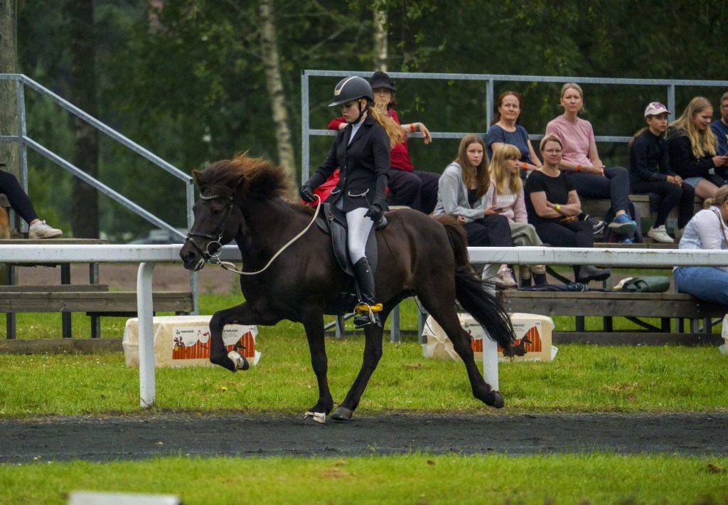 Iltapäivää kohti pystyi jo puhumaan kisatunnelmasta. Oli ihanaa nähdä erilaisia, -näköisiä ja -kokoisia islanninhevosia ja hyvässä hengessä laatuarvosteltiin niiden askellajeja ja kuunneltiin, pääsikö tuomareitten kanssa samoihin lukuihin pisteissä! 🙂 Innostus omien hevosten tavotteellisempaan ratsastamiseen nosti päätään myös, nytkun omalta pihalta löytyis ratsastuskenttäkin, niin siihen olisi paremmat mahdollisuudetkin. 😉 Mistä sitä tietää, jos vaikka joskus Safirin kanssa mennään kokeilemaan (sekoilemaan) N-sarjaan ( eli vissiin sellaiseen vapaaseen luokkaan?), tosin pitäisi ensin saada hommattua se BE-korttikin…