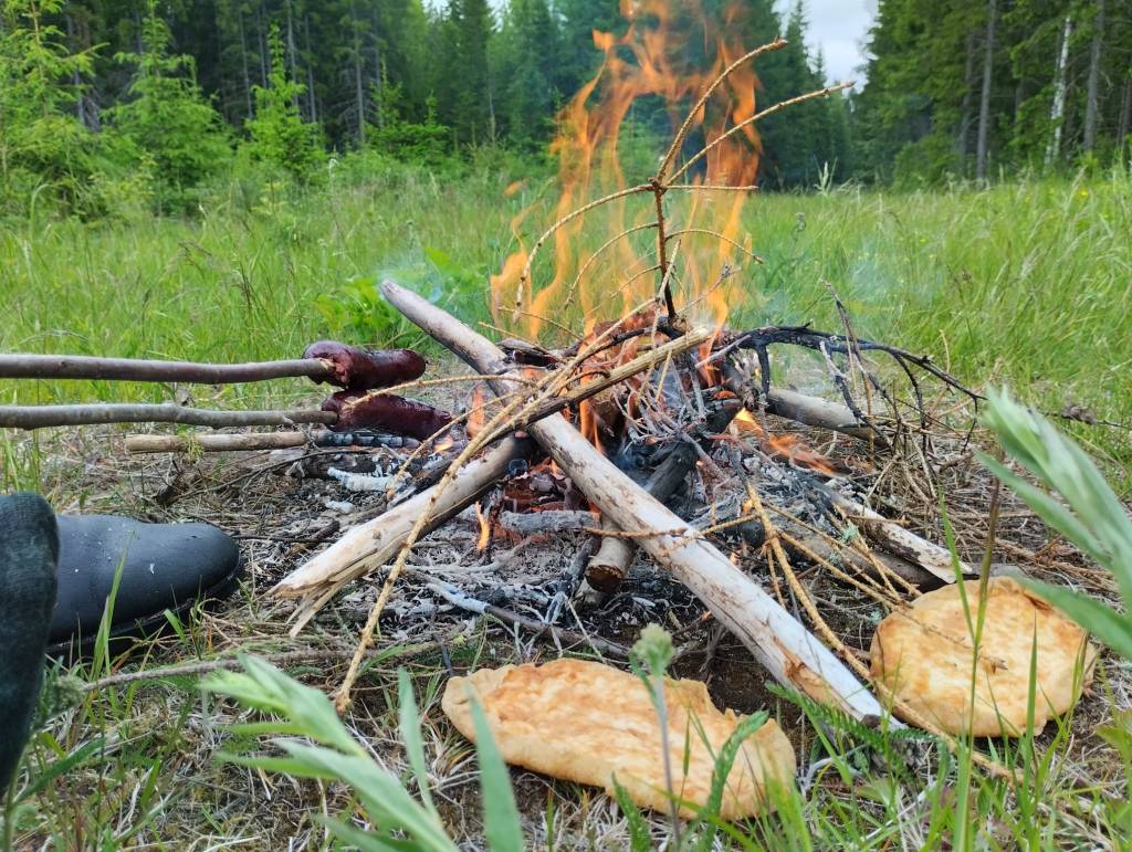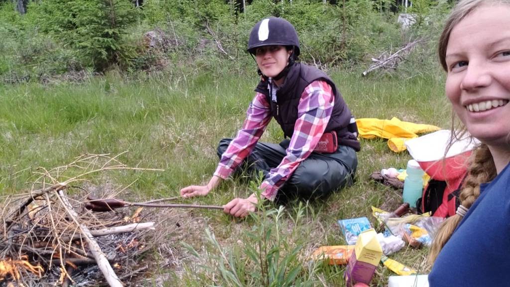 Toisen päivän vaellusosuudella aurinko vähän pilkisteli välillä. Pidettiin evästauko risunuotiotyyliin ja kyllä vaelluksella kaikki maistuu paremmalta… Päästiin hiekkateiltä enemmän metsäisille teille niin reittikin miellytti itseä enemmän. Eksyttiin kylläkin vahingossa sotilasalueelle, minkäs mahtaa kun ei siellä metsässä mitään kylttejä ole… Jätettiin kakat heille muistoksi ja kipitettiin äkkiä muualle. Hups!