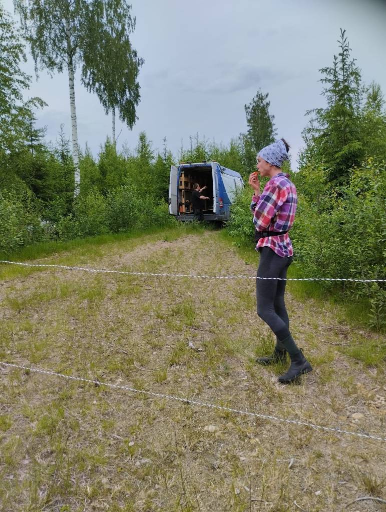 Eka päivä sisälsi siis hyvinkin paljon hiekkatietä ja maalaismaisemaa. Saavuimme Kalhon Honkapirtille klo 13, jonne olimme tuoneet mm. aitaustarvikkeet edellisenä päivänä. Teimme aitauksen, langat jäi vähän vajaiksi, mutta onneksi on kiltit hepat. 🙂 Loppuilta meni rentoutuessa nojatuoleissa, katsellessa kännykältä Hobittia ja saunoessa (luksusta!).