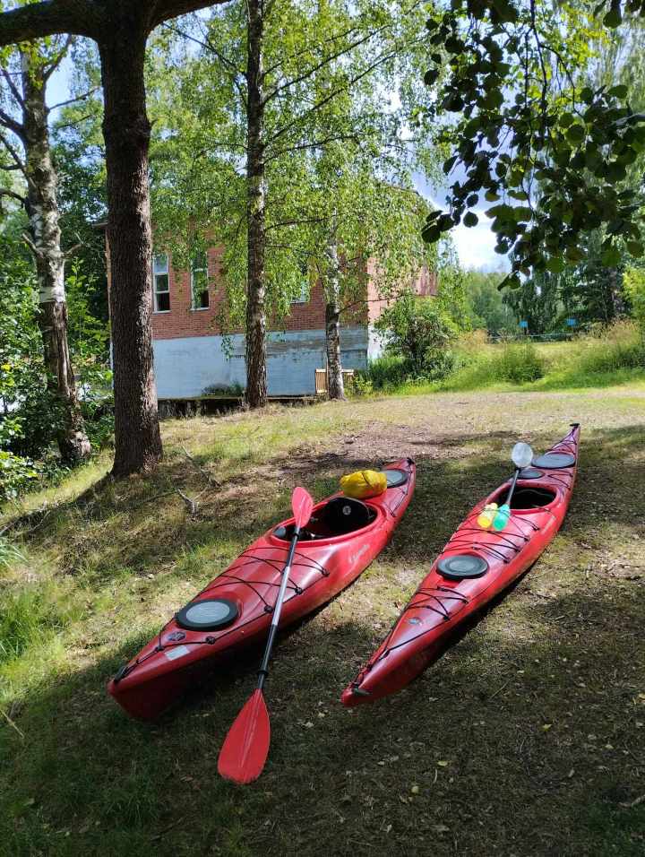 Sis. kanootit, melat, liivit ja opastus, pääruokien materiaalit, pannukahvit.